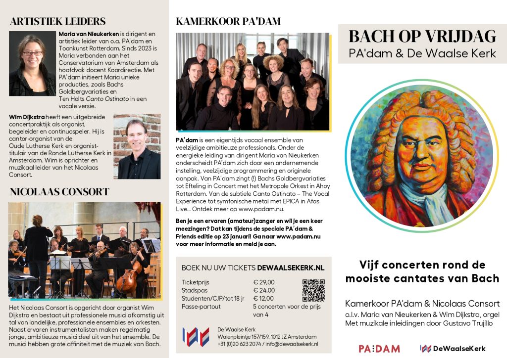 Samen met organist Wim Dijkstra is Maria artistiek leider van de concertserie Bach op Vrijdag: een samenwerking van PA’dam en De Waalse Kerk Amsterdam.